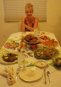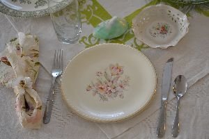 Most of the pretty tableware that I have here I picked up at thrift stores, antique malls, or I inherited from my grandmother.  The pretty tablecloth I bought at my most favorite thrift store for just $6.00.  It  would have gone for a lot more on Ebay or at an antique mall.