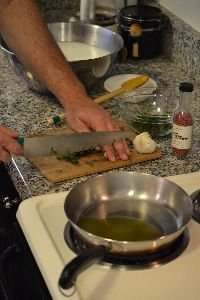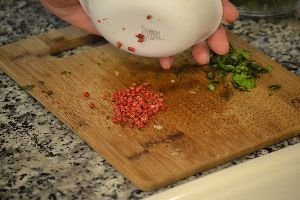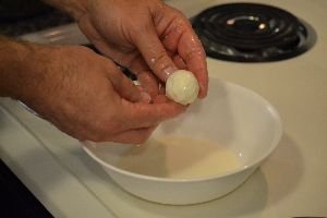 In a medium sized pot, boil enough water to cover the Pearl Onions.  Boil the onions for about 10 min. or until slightly tender.  Once done, pour the onions into a colander and drain well.  Slice off the root and stem ends of the onion and squeeze out the inner tender onion from the tough outer skins.  In the mean time also…