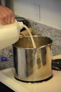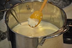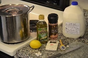 Heating water on the stove to dip the cheese into or you can use the microwave. Be sure to use raw unpasteurized milk if you can get it, otherwise use whole milk.