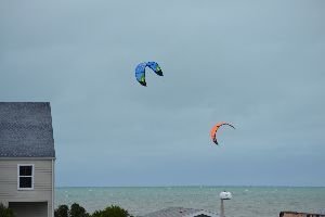 Kites flying outside our balcony.  Always something going on at the beach to look at and admire.  Whether it be the many sea birds flying by in formation, airplanes pulling their banners, or just a pretty kite.  Beach life is very special and unique and we never tire of it.  🙂