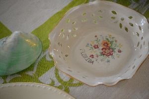 The vintage Florida dish, I have two of them, I bought at Goodwill last year for just a dollar each.  So petty!  It was probably sold at a gas station many, many years ago to tourists on their way down to Florida for their vacation.