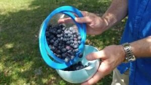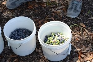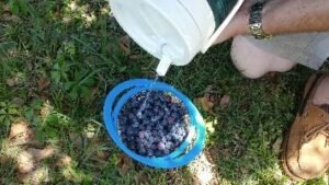 You of course want to pick the berry’s that are either blue or purple but I was picking the green as well. The green will ripen up. The hardest part was sorting the green from the blue.