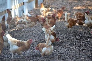 All of these chickens provide the eggs for the Keel and Curley restaurant.