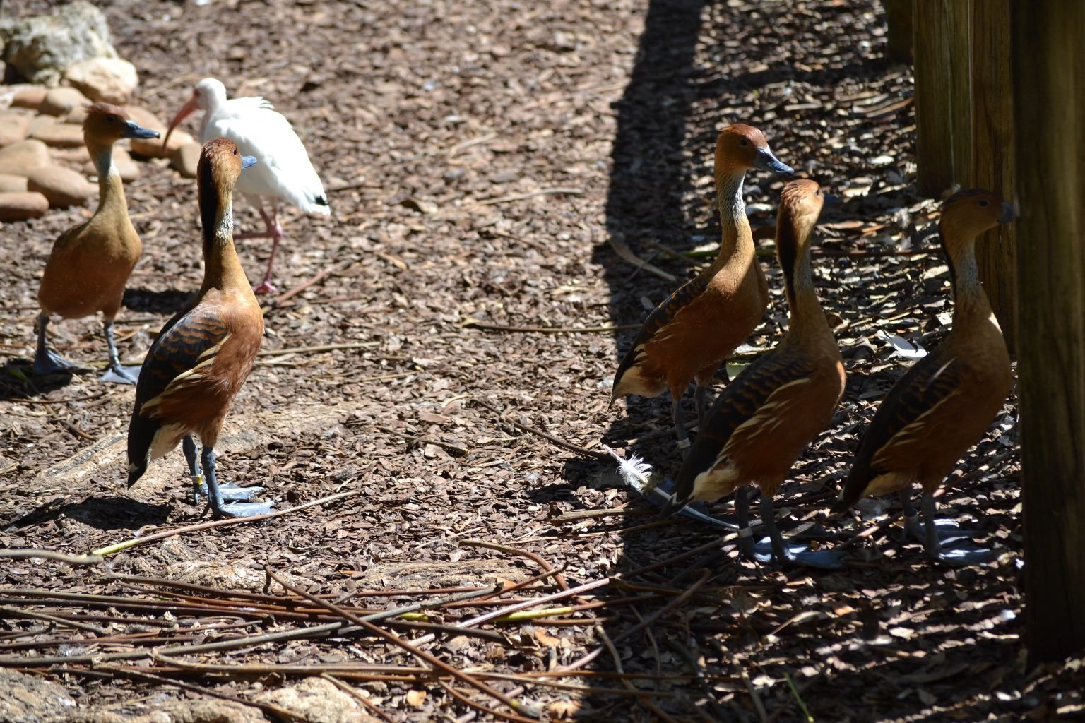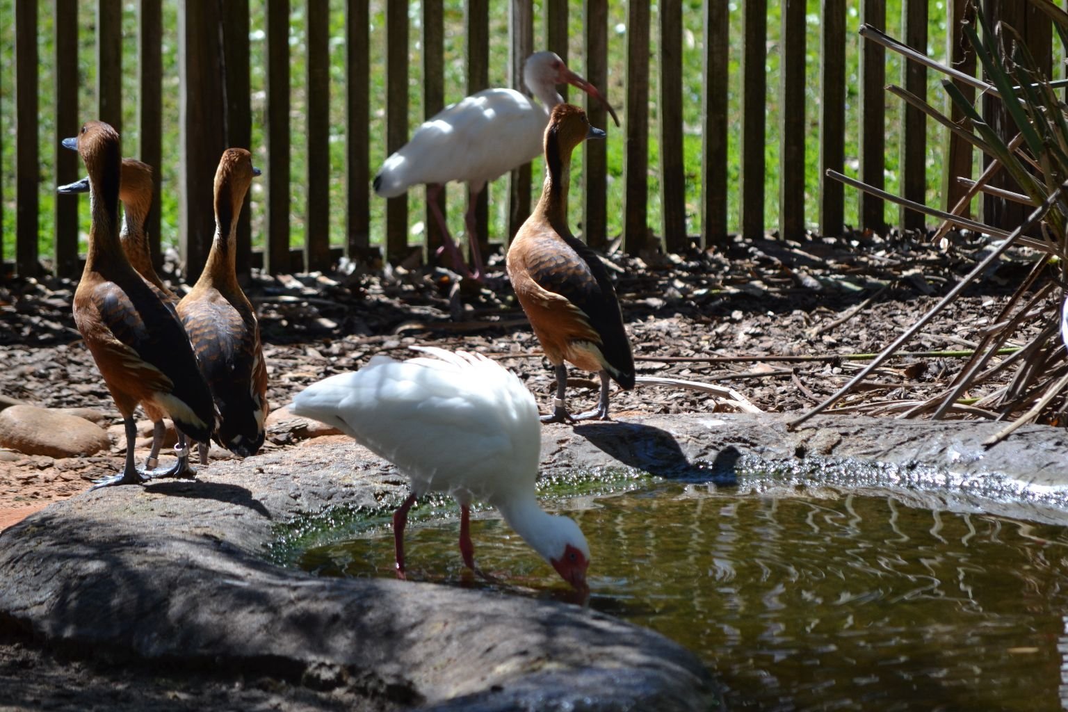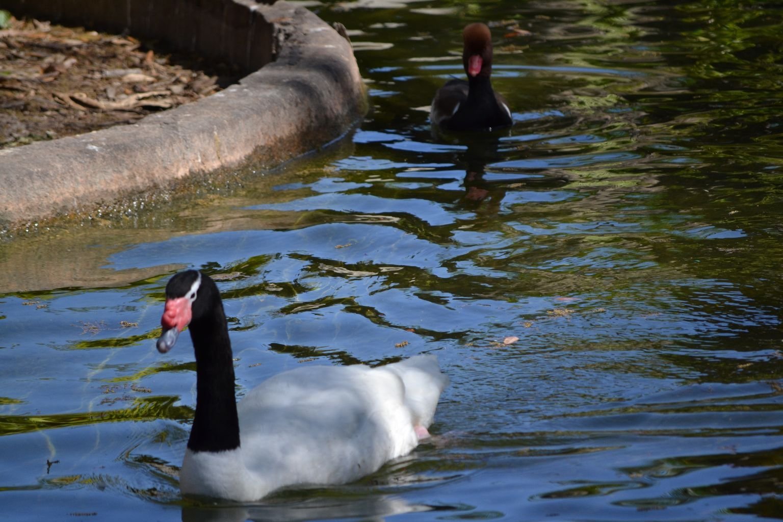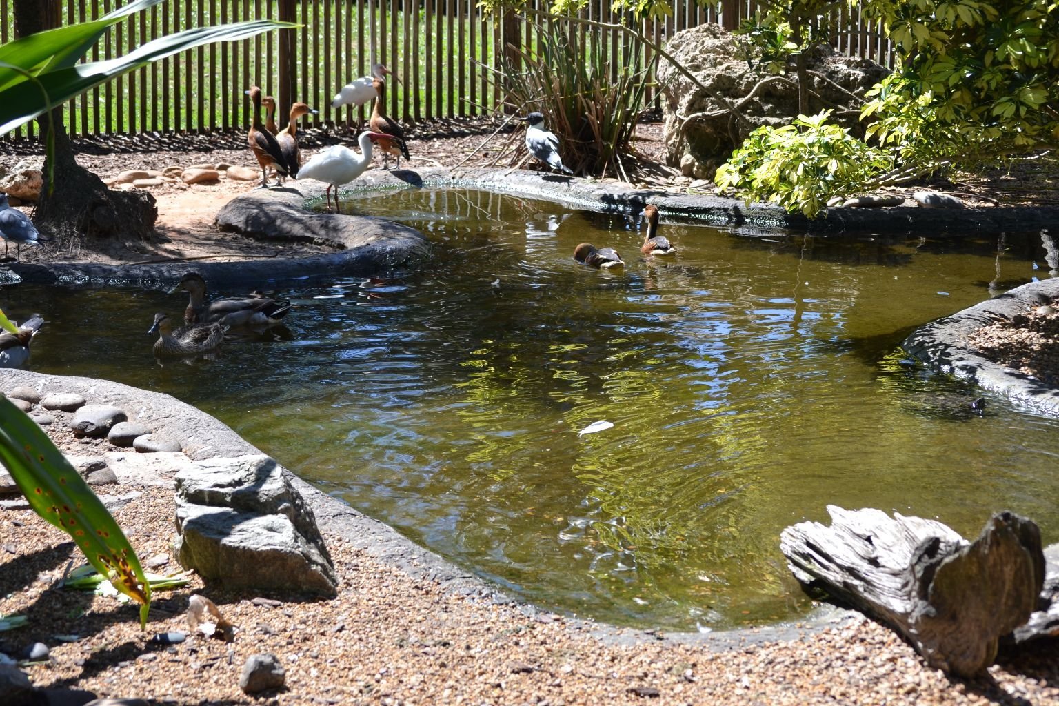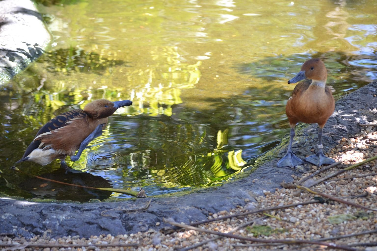 I’m having trouble identifying these ducks but they do seem happy in their little shady pond.