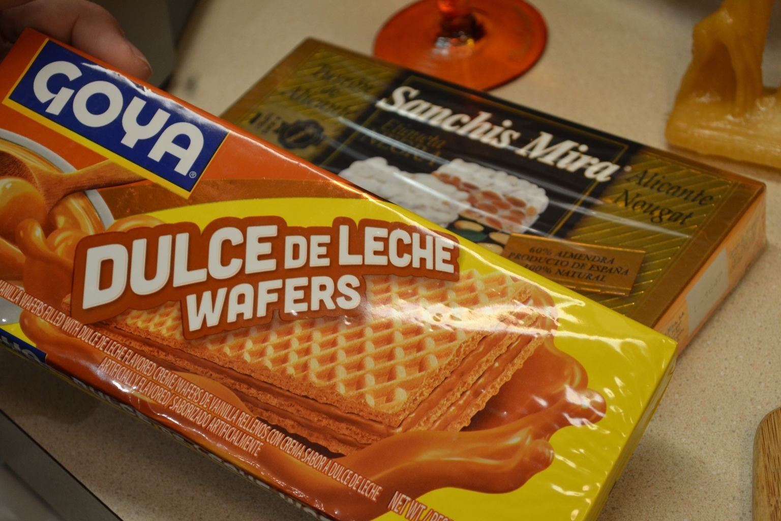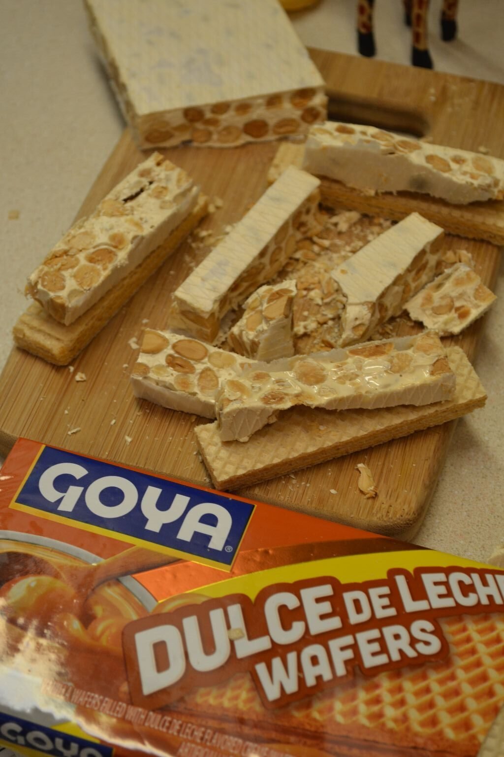 The Sanchis Mira is a popular almond nougat out of Spain, which when cut has the pattern like a giraffe. I also felt the Dulce de Leche wafers had a similar pattern which made both of these a great garnish for the drink.
