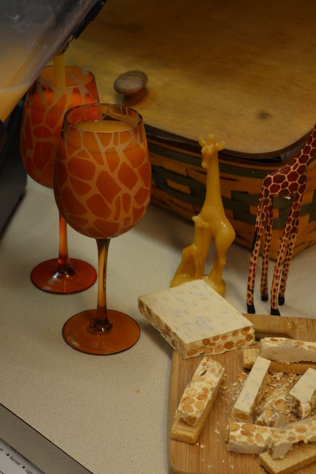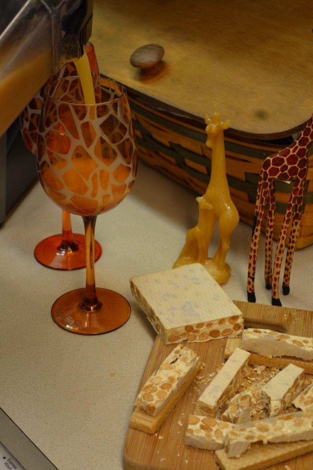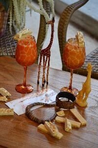 I was so inspired by our visit to the park, and especially the Giraffe’s, that I asked Gordon to create a cocktail in honor of our visit. The Giraffe print wine glasses were also a big inspiration that we had purchased as well. We hope you like it.