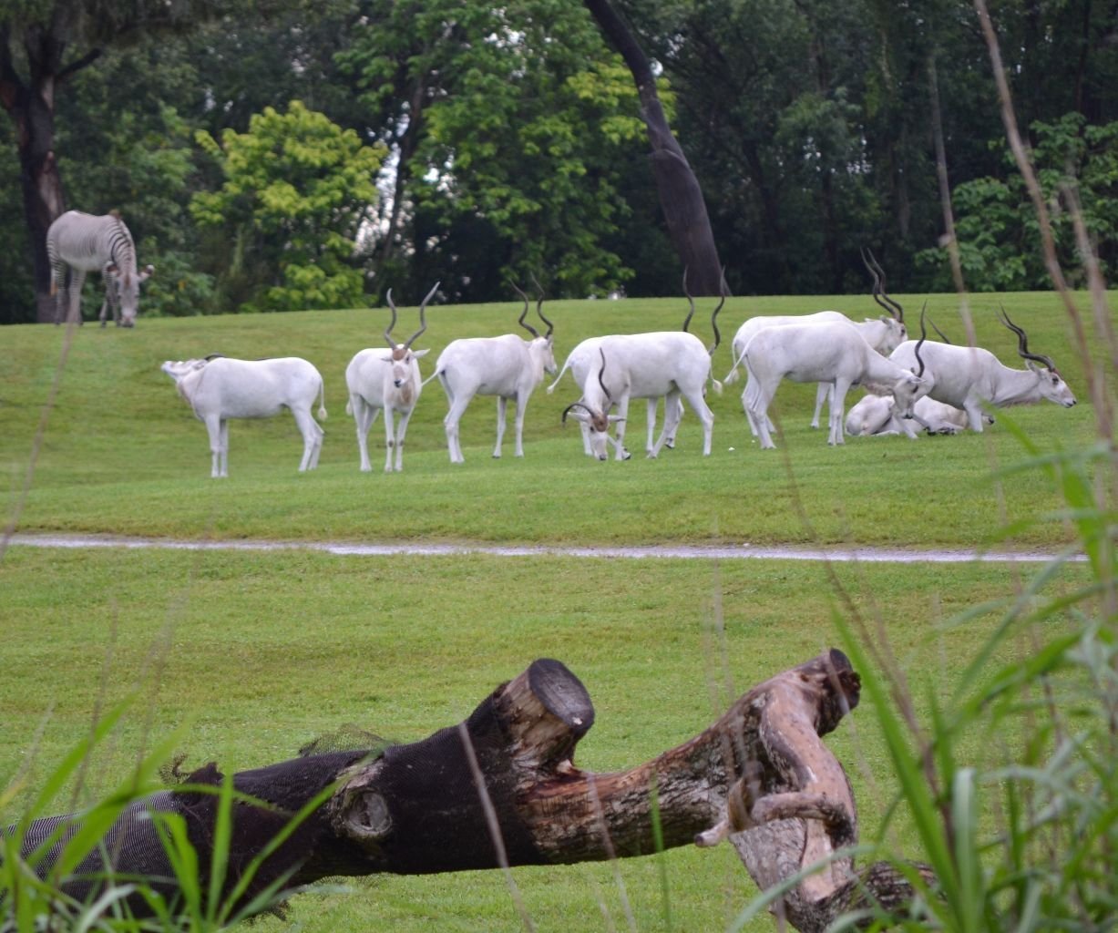 It is kind of strange to be looking at such beautiful animals roaming the park while there is a roller coaster ride out there among them.