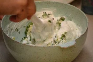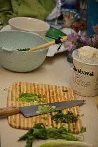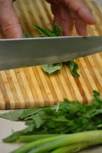 Chop up your herbs thinly and place into the bowl.