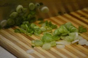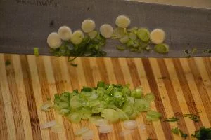 Chop your green onions into thin rounds and place into the bowl.