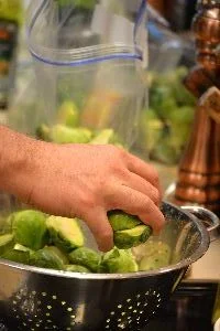 Cut 15 Brussel Sprouts in half, then wash them.