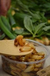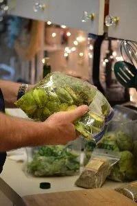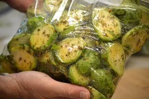 Here, we marinated the two bags of sprouts with different seasonings.