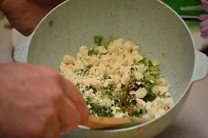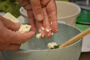 Crumble your Feta Cheese and add to the bowl.