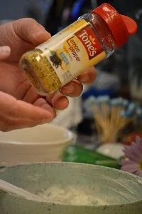 You can use something with herbs, garlic, with a touch of salt and pepper or you can use an already prepared seasoning as we did.
