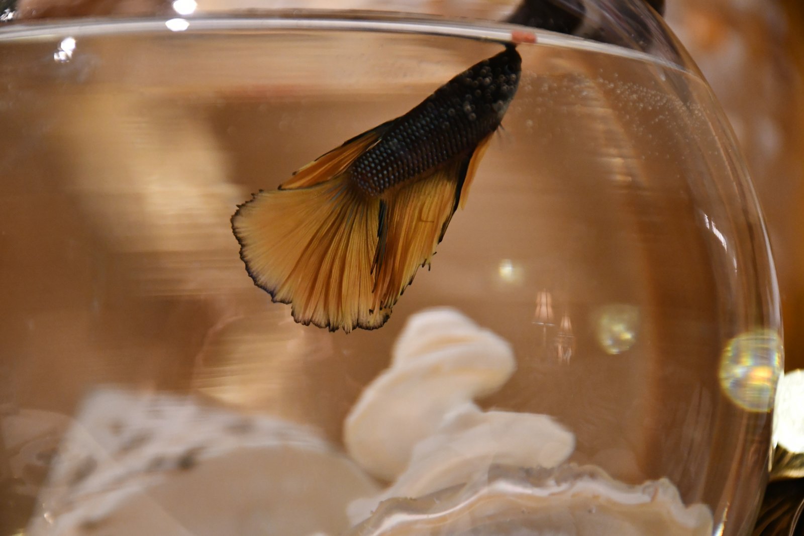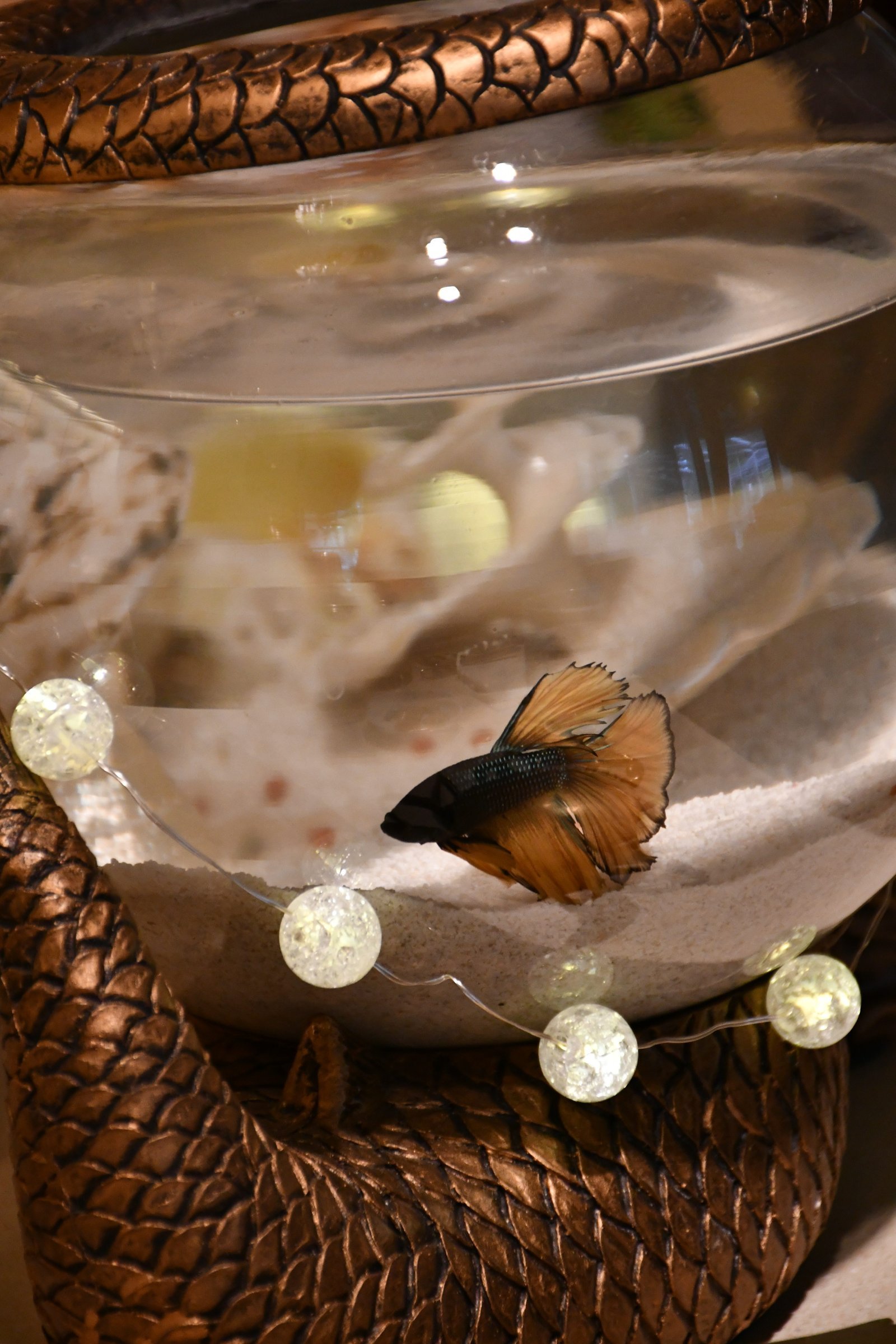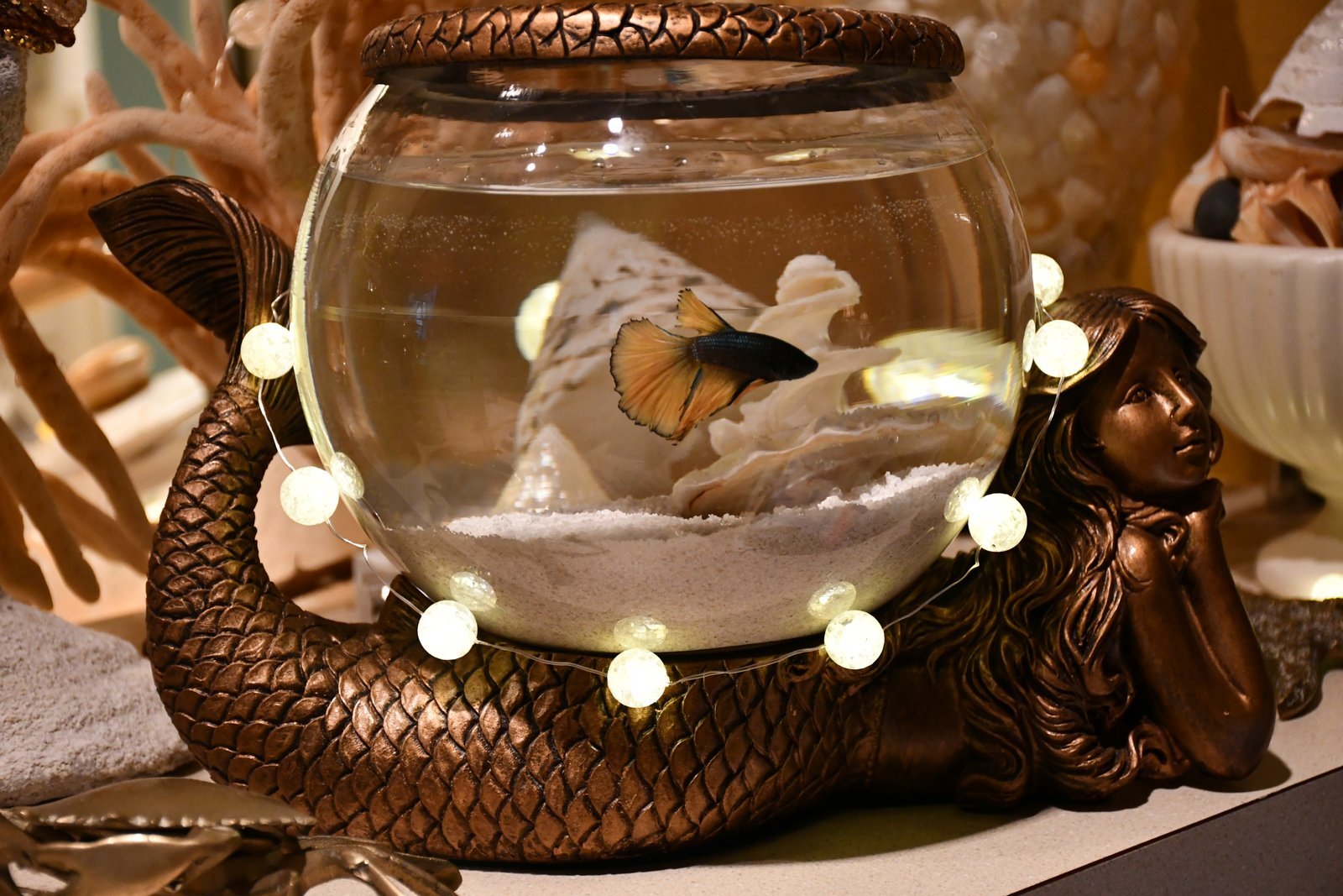 Although the fish tank bowl is magnified, and Hurricane looks larger than he actually is, a betta is recommended being in a tank twice this size. But, as I see it, it is better than being in that cup in the pet store.