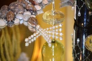 I then start to fill in the gaps on the light fixture with smaller shells and I glue in the beads when I have finished with the project.