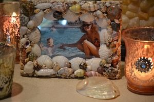 Just get an old inexpensive frame and glue seashells all over it by using hot glue, then insert a favorite photo.