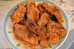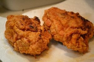 Fry the chicken until the internal temperature reaches 160’F. When done, remove the chicken and place onto paper towels. As the chicken rests, the internal temperature will continue to cook the chicken to 165’F. Lightly salt your chicken when the frying is done.