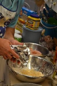 In another large bowl place your dry ingredients to include your Rice Krispies cereal……