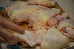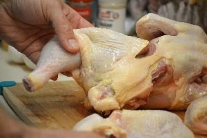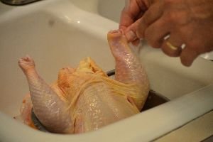 When the side of the chicken becomes golden brown, turn the chicken over.