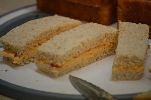 This is a memory of my mother. First of all, that is her beach towel in the photo above. And second, when she was a young girl she and her friend Elissha would take the train down to Miami to spend the summer with Elissha’s Florida relatives. My Grandmother would pack my mother a lunch in a shoebox that would consist of fried chicken and pimiento cheese sandwiches.