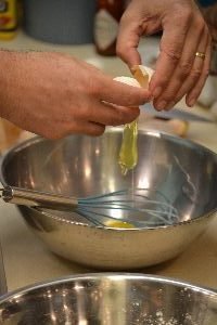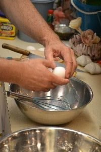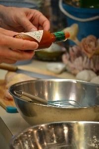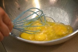 Crack your eggs into a large bowl and add your Tabasco Sauce if wanted. Whisk your eggs together well.