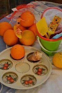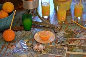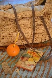 Would it be Florida without a straw purse, a paperback book, sunglasses, and an orange?