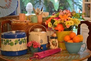 The picnic basket belonged to my Great-Grandmother Honnie, same with the plates and cups. There are also a few Florida souvenir items that they purchased on our trips to Florida as well that I have.