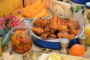 Tomato Salad, Cantaloupe, and Fried Chicken